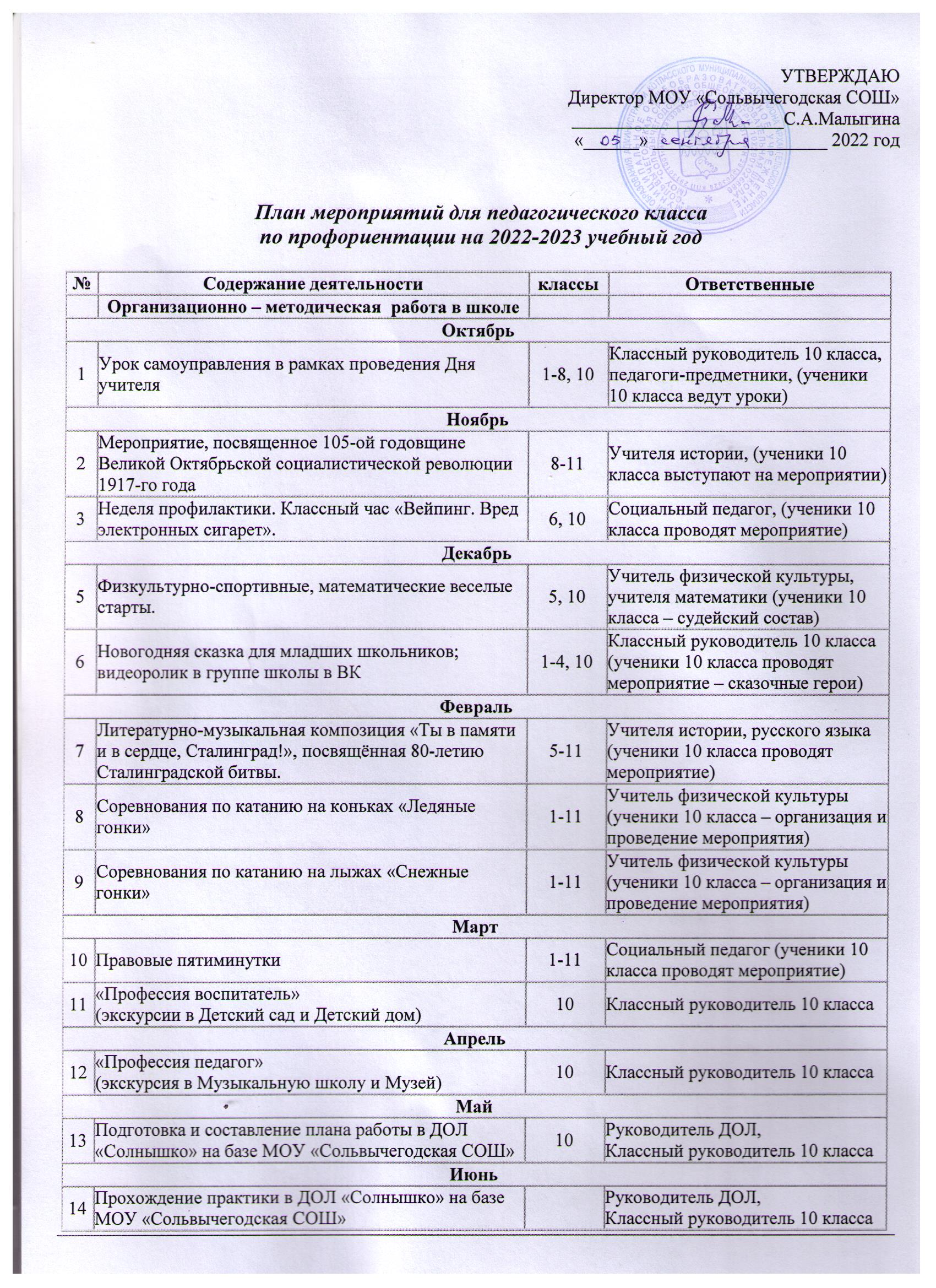 - Групповое и индивидуальное профконсультирование, с целью выявления и формирования адекватного принятия решения о выборе профиля обучения;