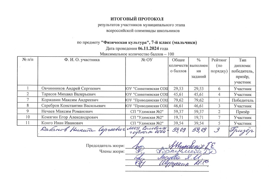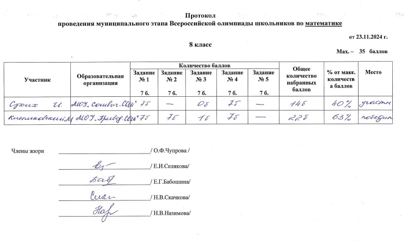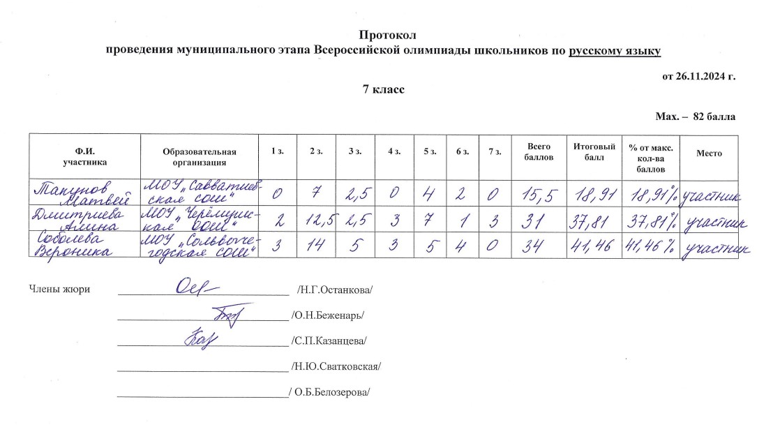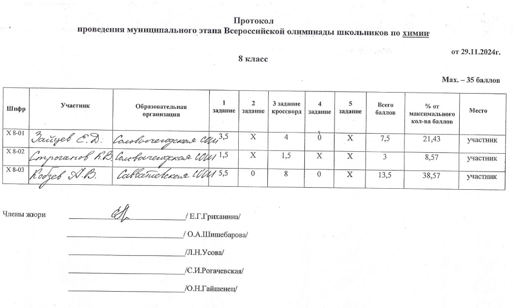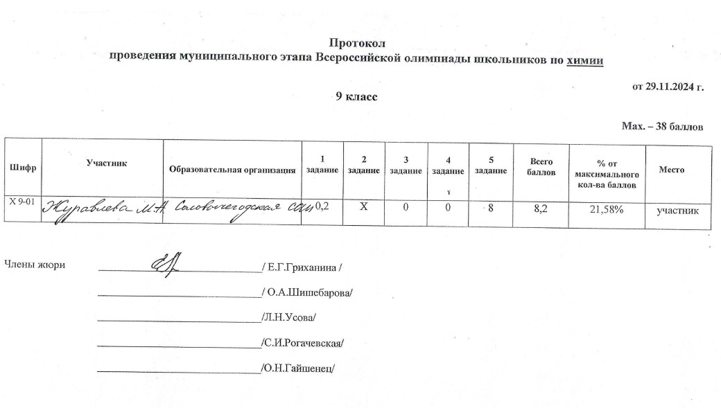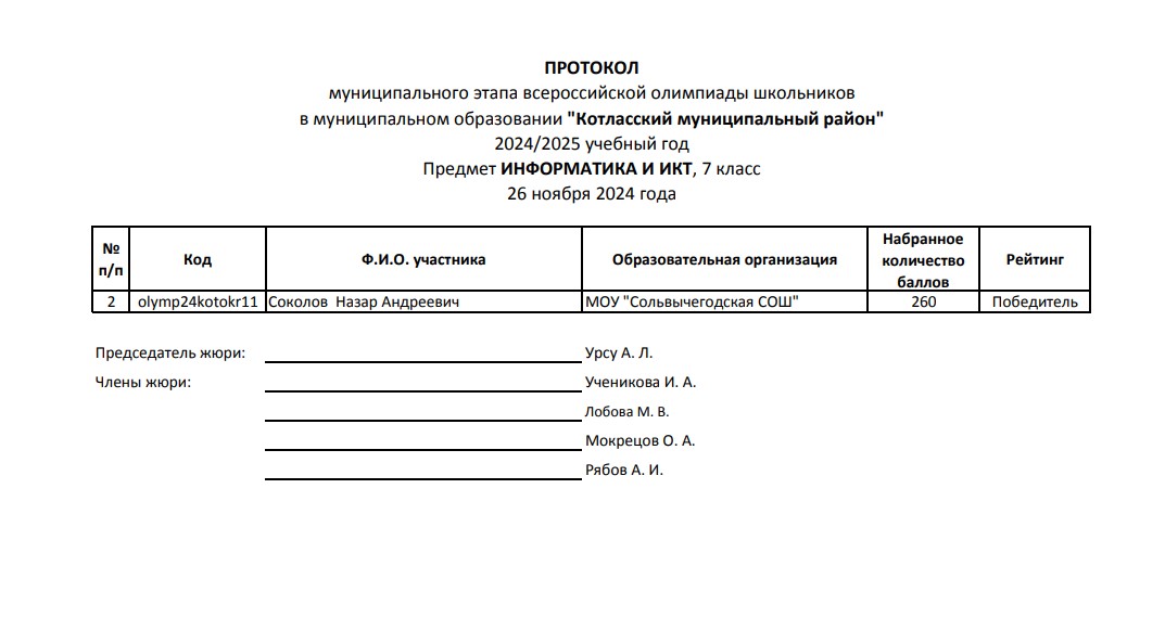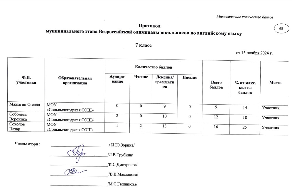 . МОУ"Сольвычегодская СОШ" - Протоколы проведения муниципального этапа ВсОШ