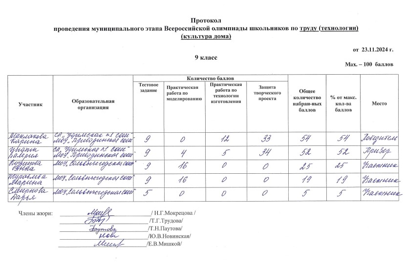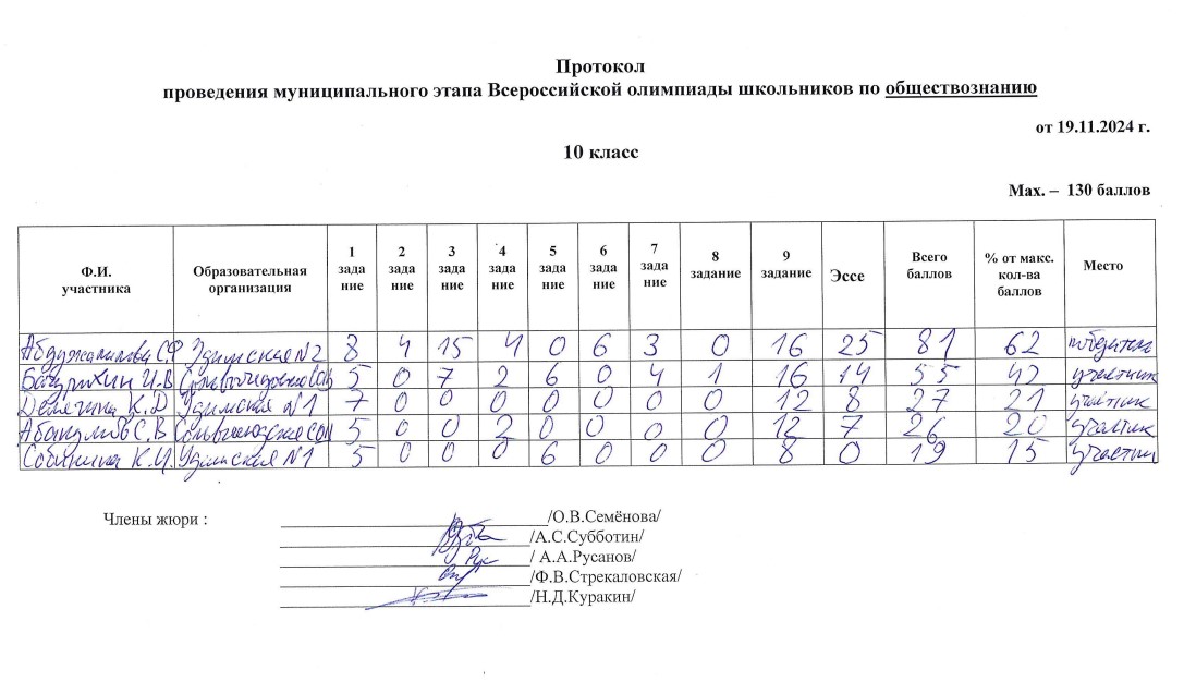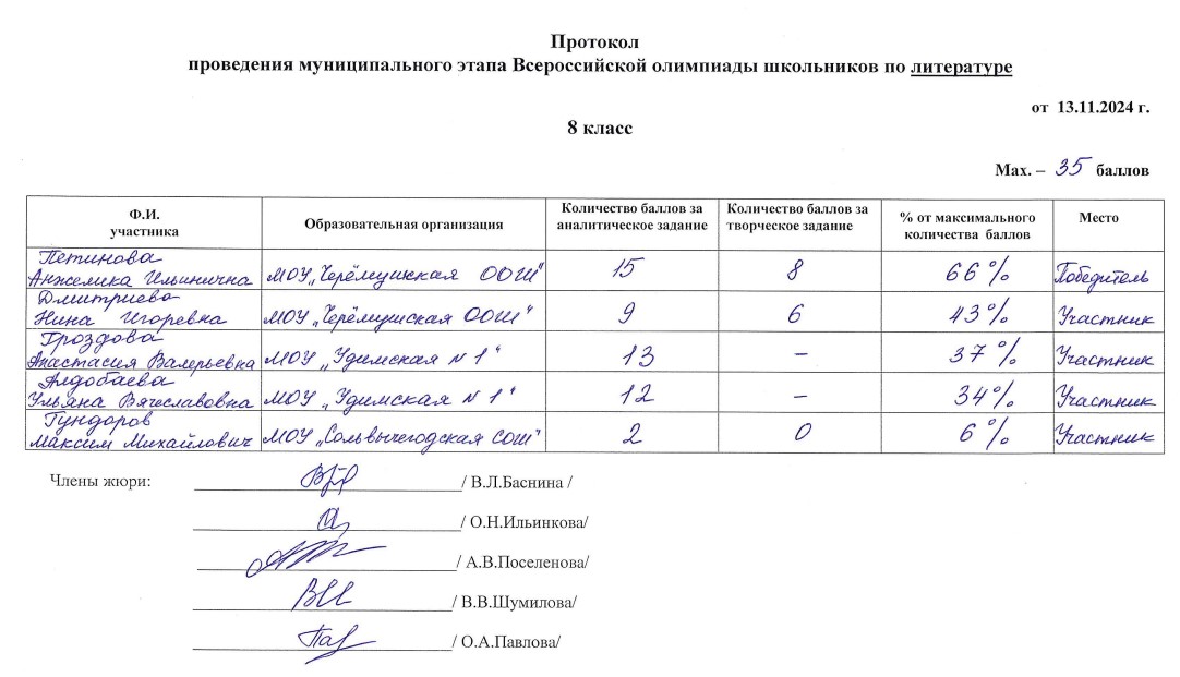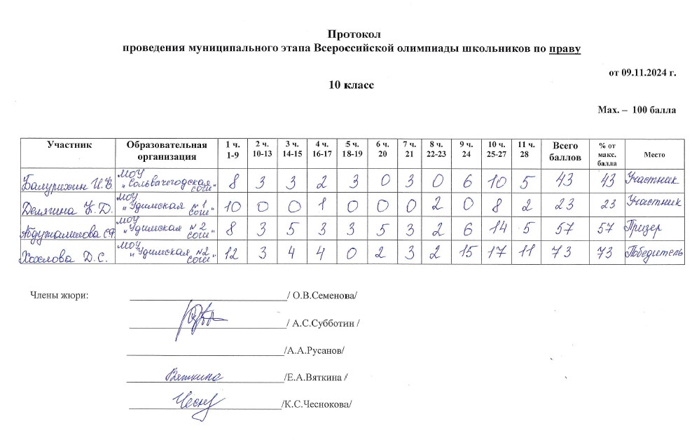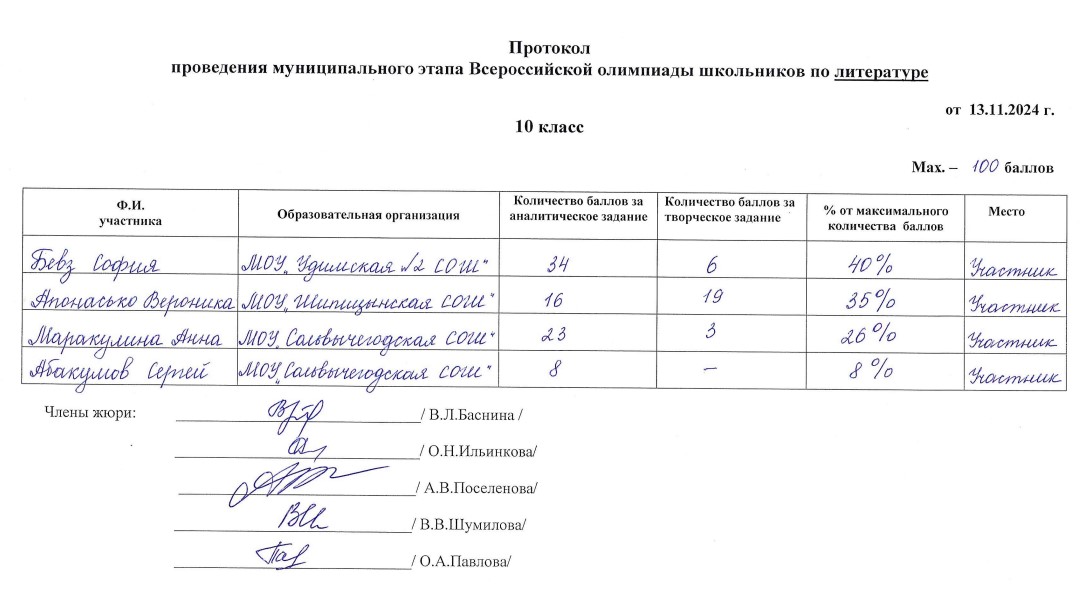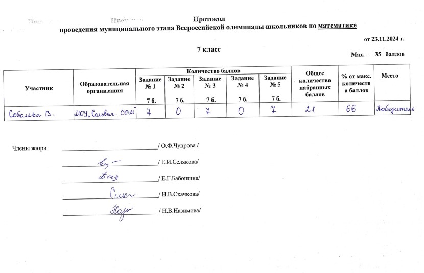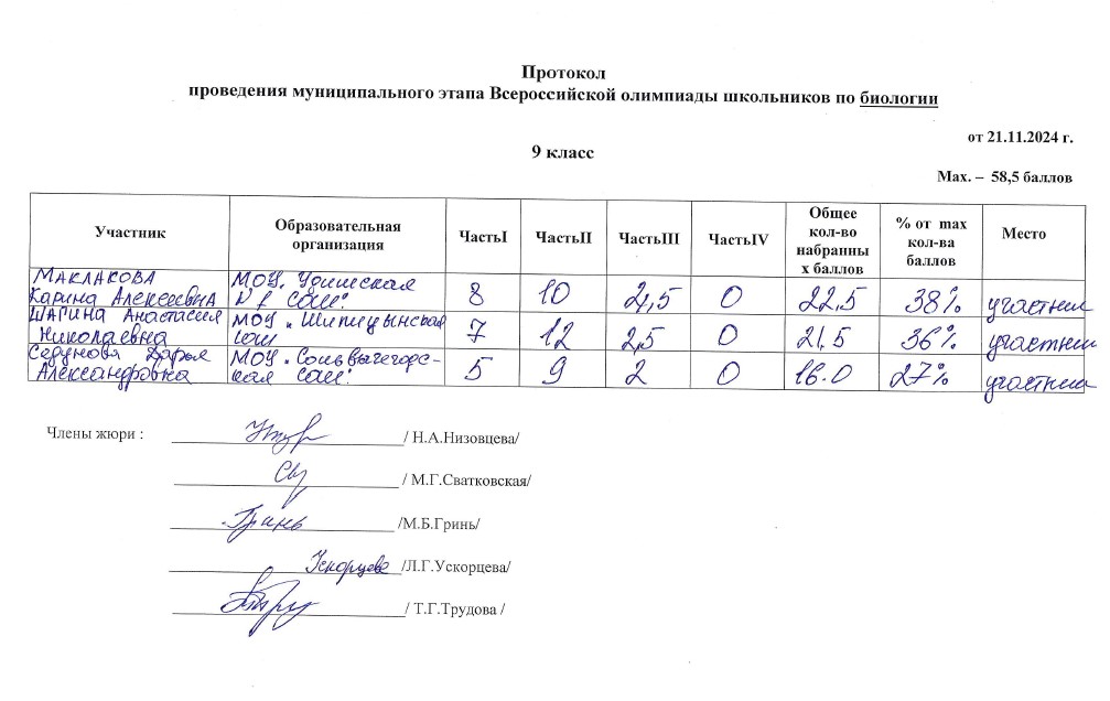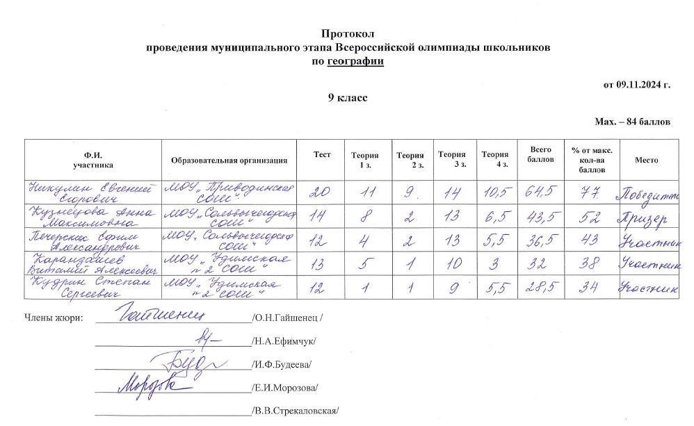 . МОУ"Сольвычегодская СОШ" - Протоколы проведения муниципального этапа ВсОШ
