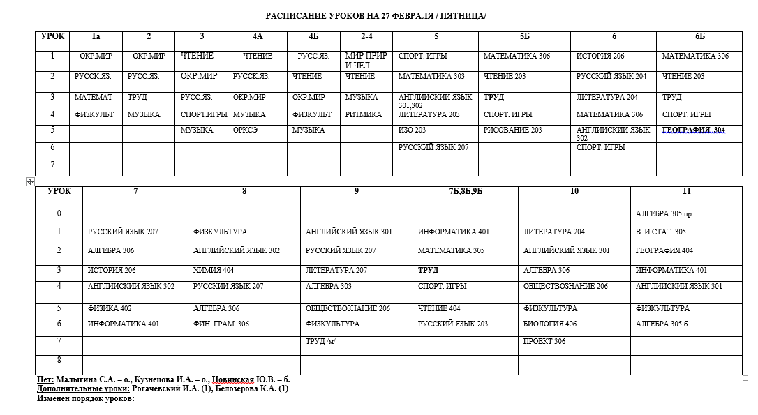 . МОУ"Сольвычегодская СОШ" - Расписание на завтра