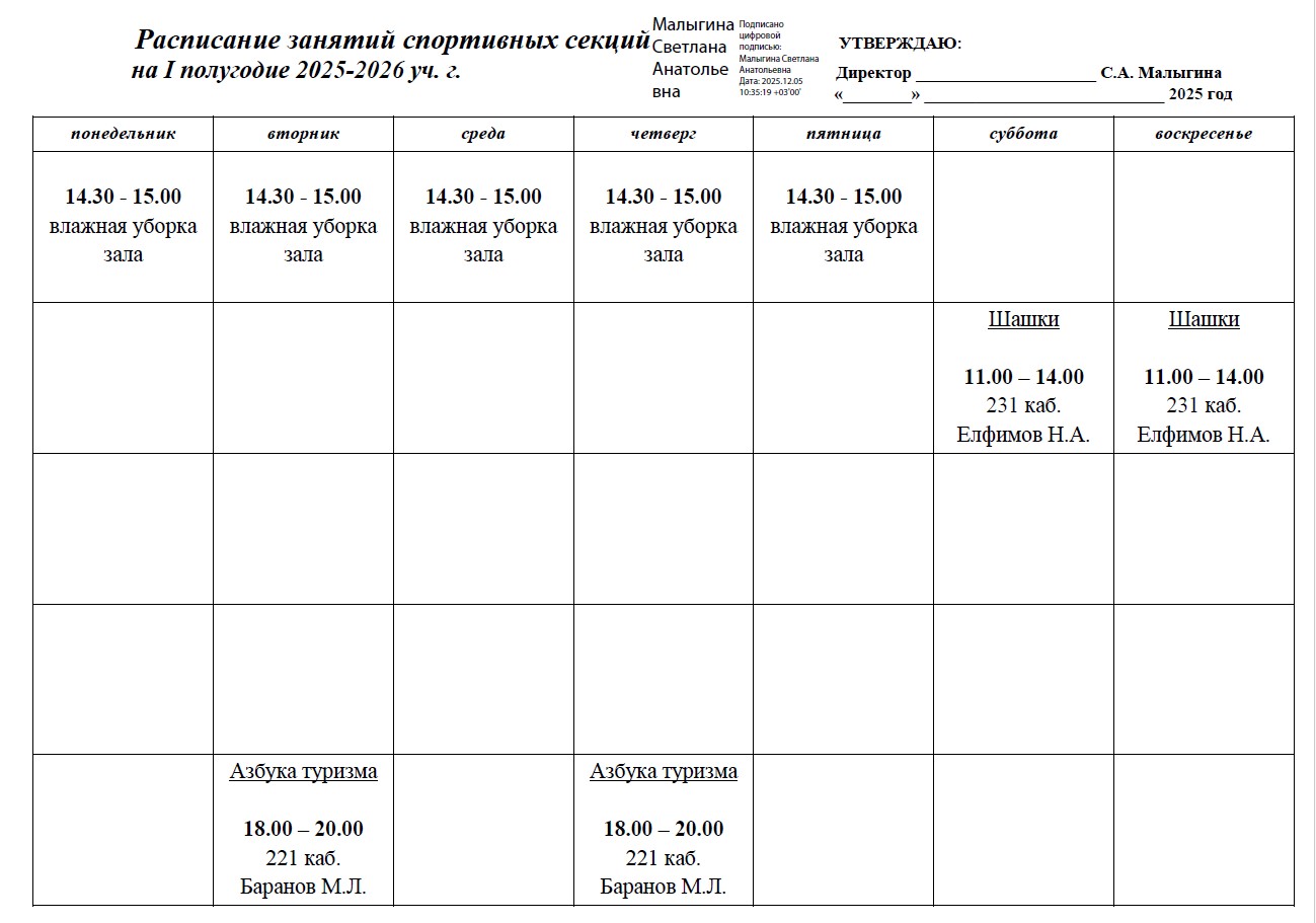 . МОУ"Сольвычегодская СОШ" - Расписание занятий спортивных секций